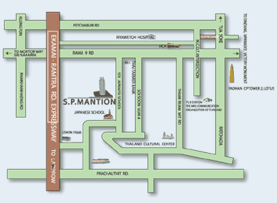 Welcome to Bangkok's Comfortable Residence SP MANSION Luxury Apartment in the prime area of Bangkok. SP MANSION offers a prime location for successful and happy life like home in Bangkok. Just a few minutes short drive to Ratchada-Ladprao, Asoke, Sukhumvit, Petchaburi, Ramkhamhaeng Rd. and Expressway to other location. The perfect residence is fully furnished, completely decorated, and surrounded by business centers, hospitals, shopping centers, schools, banks, entertainment.